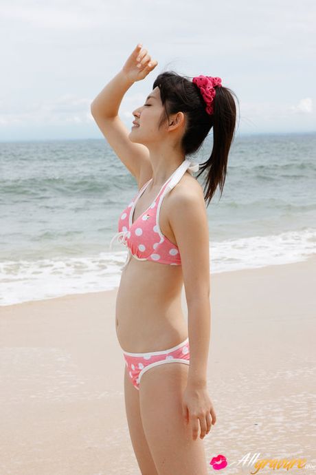 All Gravure: Airi Suzuki Asian in cute bath suit enjoys hot sand on her curves