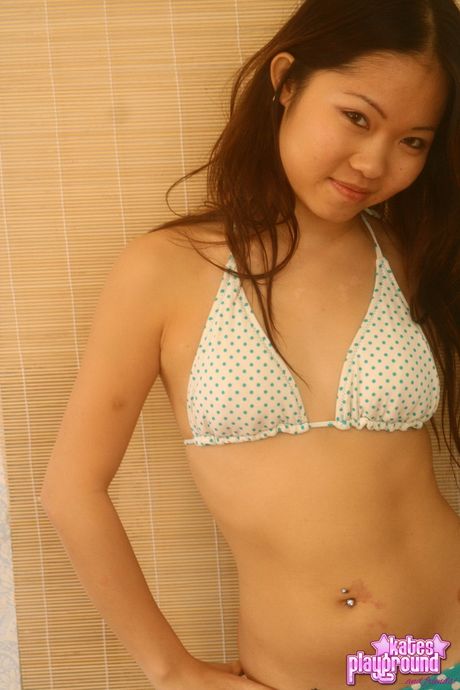 Kates Playground: Asian teen Grace strips off her bikini and presents her big juggs and ass