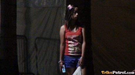 Trike Patrol: Asian teen Lalaine strips and fingers her twat while playing with her tits