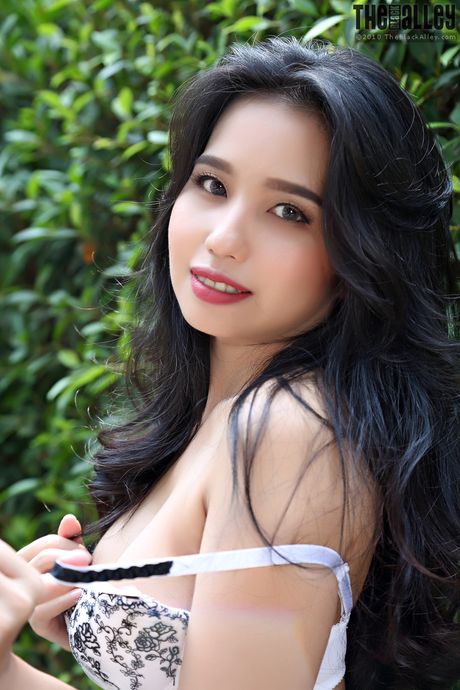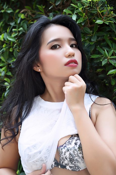 The Black Alley: Asian teen Norah strips and shows her tiny tits and ass in the backyard