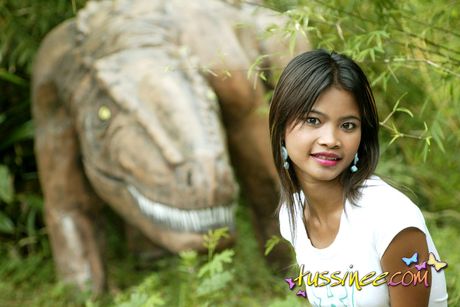 Tussinee: Asian Teen Tussinee doing some public flashing in a dinosaur park