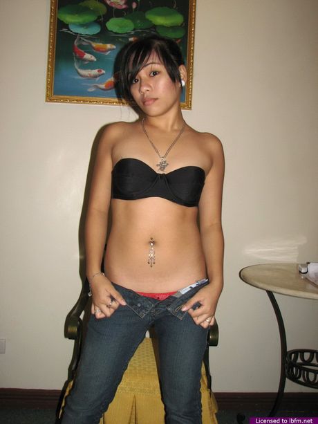 LBFM Addiction: Asian teen with a tiny tattoo on her ass strips and displays her pierced nips