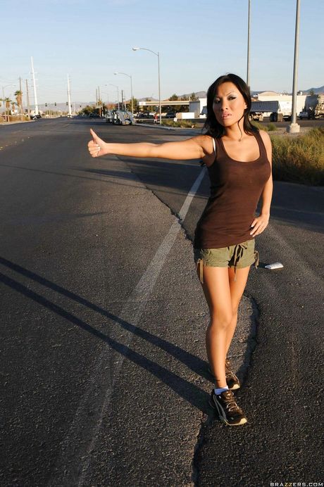 Brazzers Network: Deluxe japanese Asa Akira in shorts work with wet lips on big rod