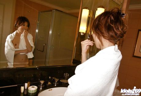 Idols 69: Excellent japanese Nanase sucks on cock and gets a cumshot on face in shower