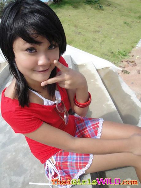 Thai Girls Wild: Febe is a sexy dirty devil schoolgirl showing her pussy in public