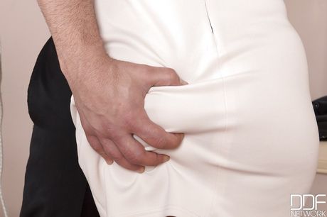 Only Blowjob: Hot asian brunette Cristine Akira Lee in skirt sucking deep rod and enjoys a cumshot on face