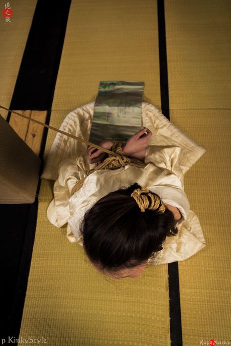 clubropemarks: Japanese babe strips off and bares her tiny tits and pussy