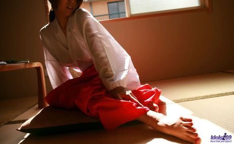 Idols 69: Platinum Asian Seiko Yamaguchi strips to her stockings & shows her hairy cunt