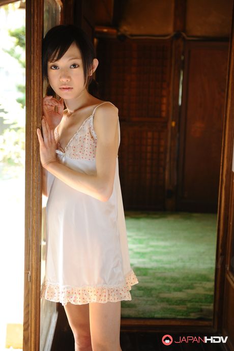 Japan HDV: Slender hot teen Aoba Itou poses in her white night gown on the floor