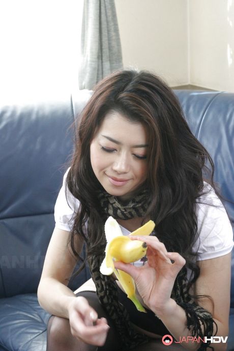 Japan HDV: Stunning japanese dark-haired Sayuri Shiraishi in hot stockings unveils tiny tits and loves dildo